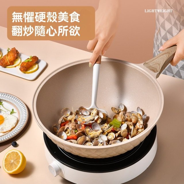 麥飯石 不黏易潔 家用爆炒鑊(送玻璃鑊蓋)適合電磁爐、電陶爐、明火